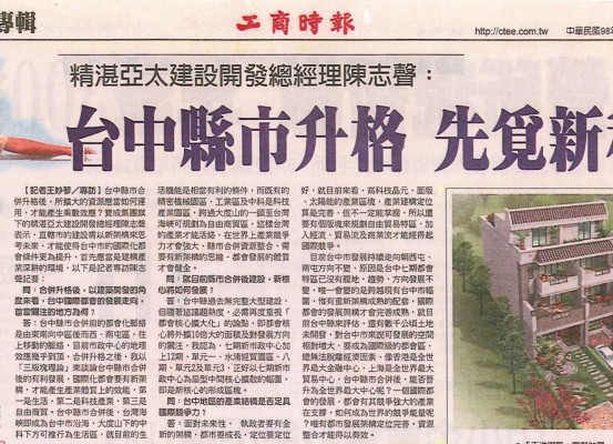 精湛亞太建設總經理陳志聲 掌理台中市第一單元重劃開發推案